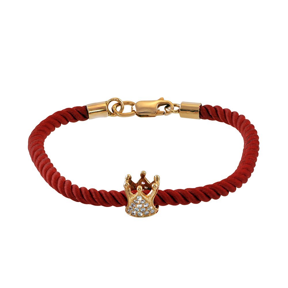 Bracelet on a rope, 585* red gold inserts. The diameter of the rope is 4mm. Inlays fianite diameter 1mm. Carabiner lock.