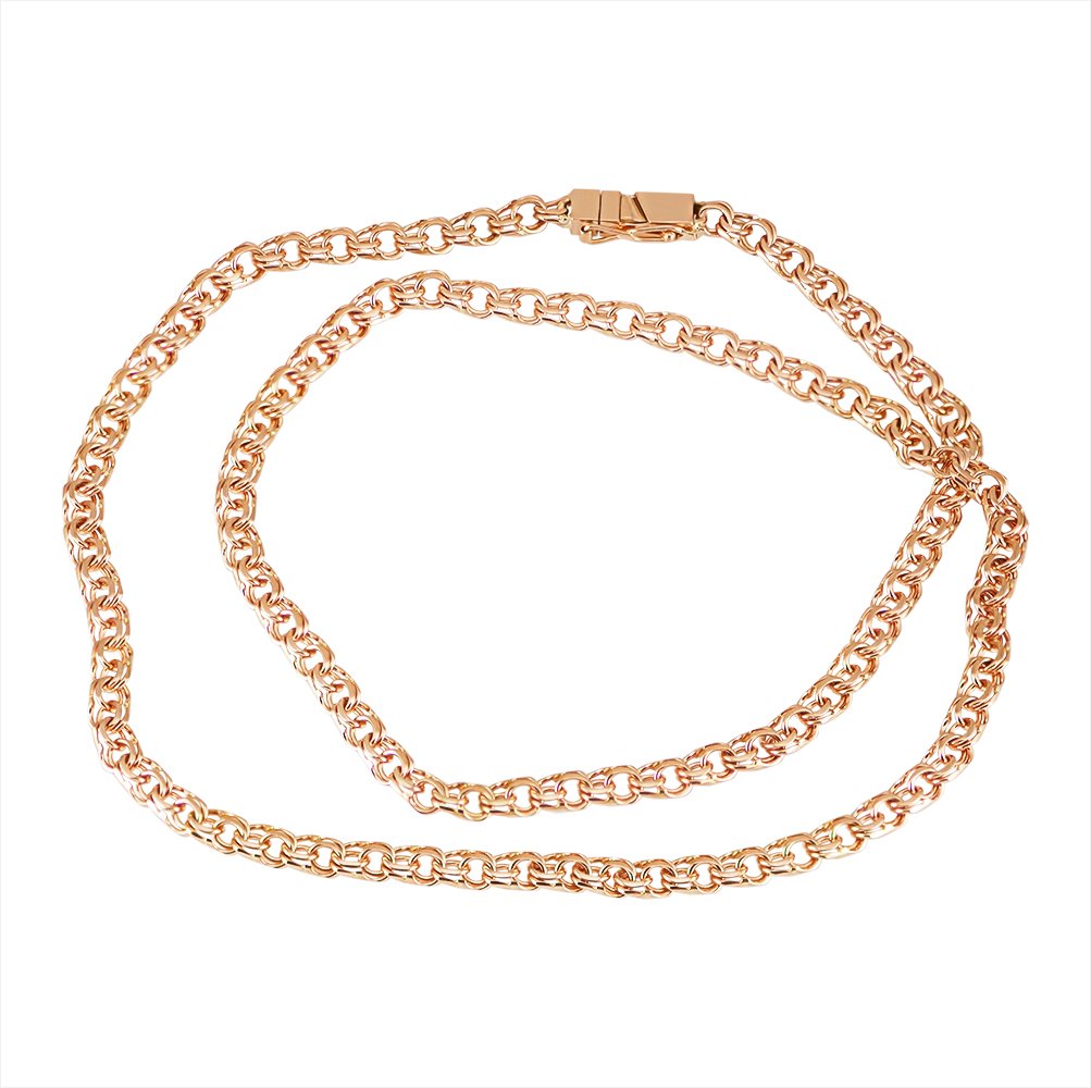 Klasyczny, ręcznie tkany łańcuszek "Bismarck" w kolorze czerwonego złota. Pudełko z jednym zamkiem. Waga jest proporcjonalna do długości. Wzór może być zmieniony zgodnie z życzeniem klienta.