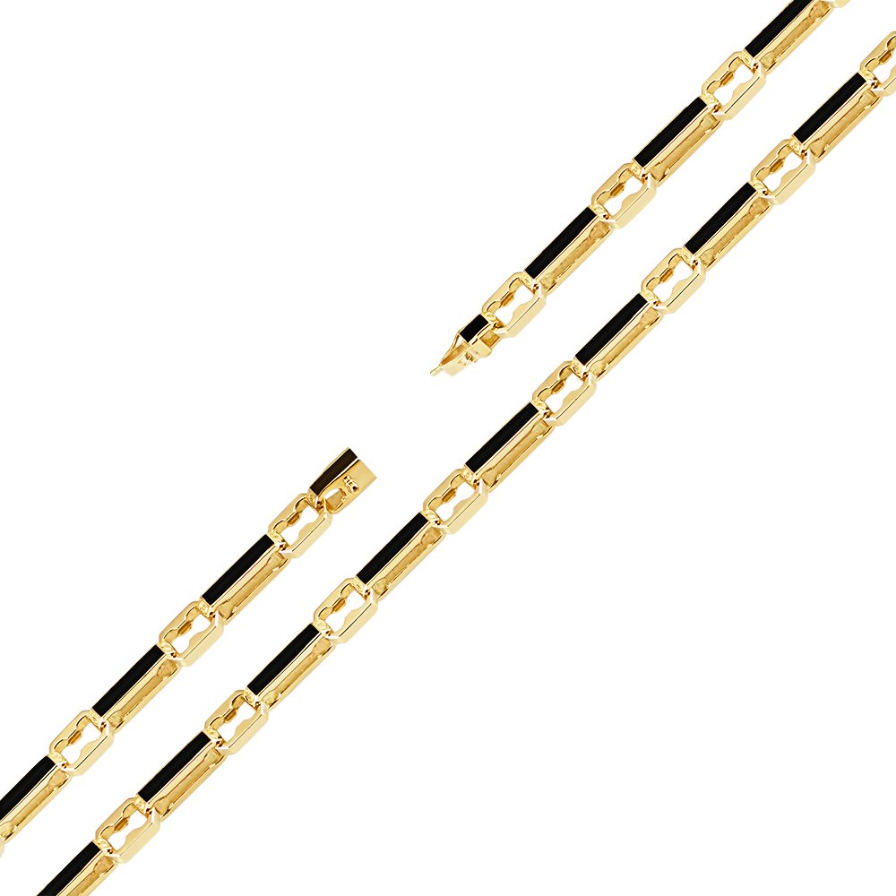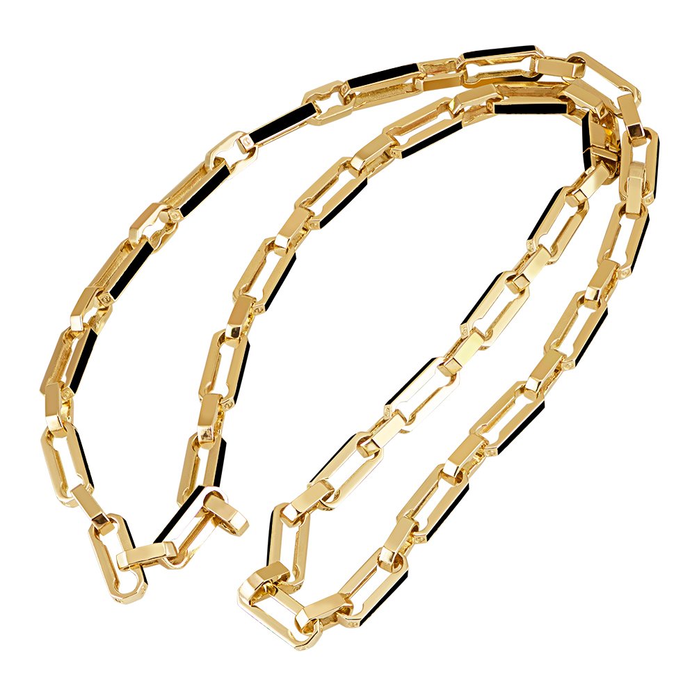 Łańcuszek w kolorze cytrynowego złota, waga zależy od długości elementu. Czarna emalia na ogniwach. Zamek skrzynkowy z dwoma urządzeniami blokującymi.