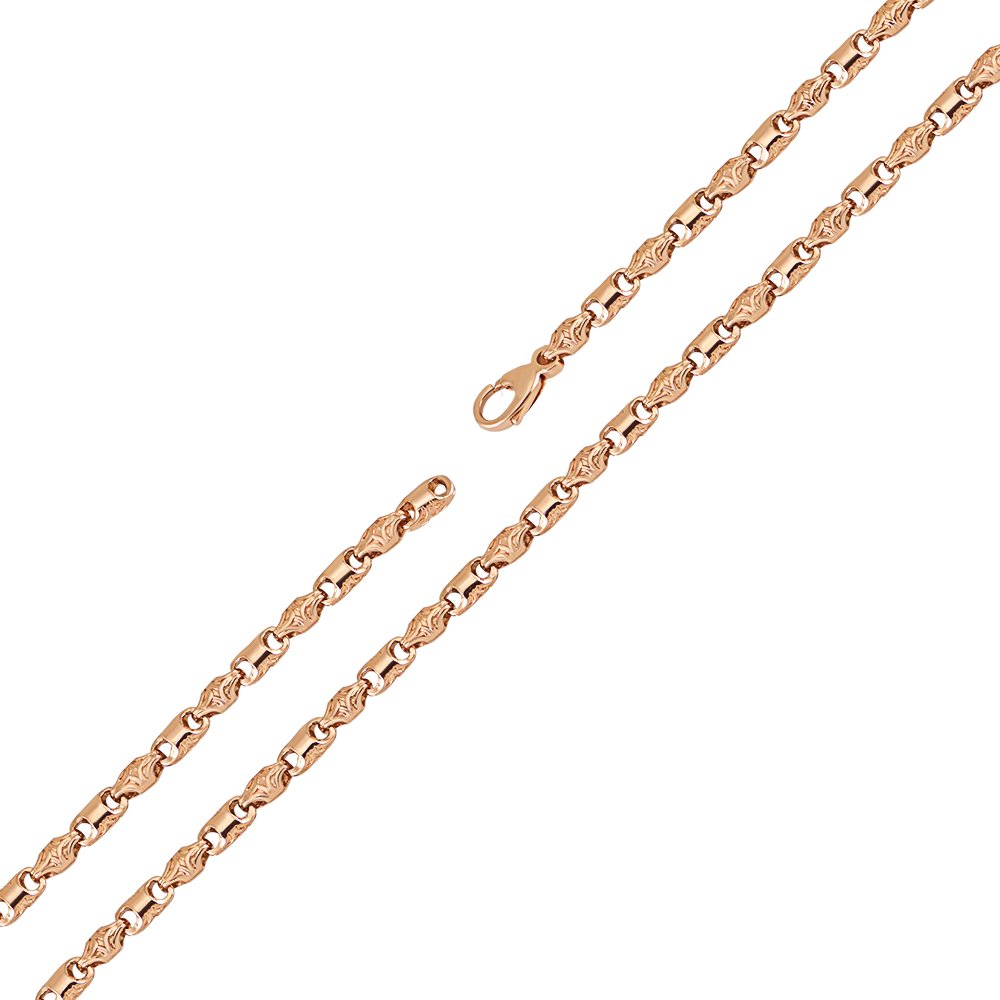 Łańcuszek jest w kolorze czerwonego złota, latający. Ogniwa są modelowane za pomocą wzorów. Zapięcie to karabińczyk. Waga różni się w zależności od rozmiaru. Wzór może być zmieniony zgodnie z życzeniem klienta.