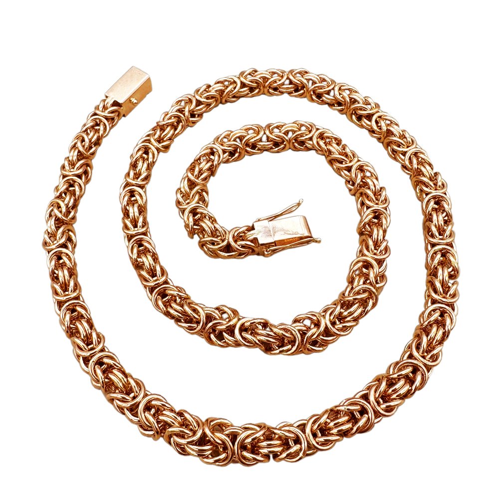 Ręcznie platerowany łańcuszek zatytułowany "Splot bizantyjski", "Lisi ogon", w kolorze czerwonego złota, z zamkiem – pudełkiem, z dwoma zapięciami. Waga jest proporcjonalna do długości biżuterii.