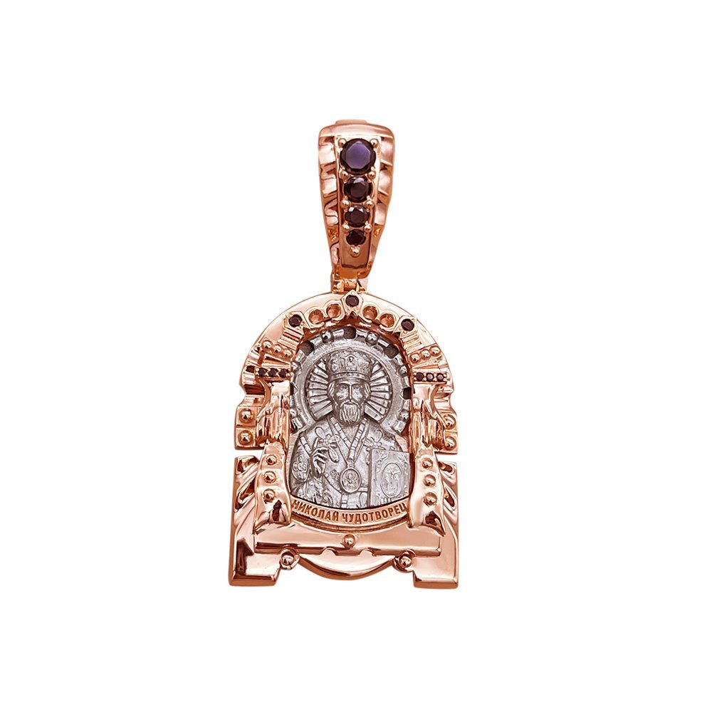 Ikona z czerwonego i białego złota próby 585*. Podstawa wykonana jest z czerwonego złota, twarz Mikołaja z białego złota, pokryta rodem. Waga złota w ikonie wynosi 39,22 grama. Wstawki z czarnych diamentów o wymiarach 1,20 mm; 1,75 mm; 4 mm; 3,5 mm; 3 mm; 2,5 mm. Wysokość ikony bez ucha wynosi 40 mm. Z tyłu znajduje się modlitwa „Ojcze nasz”.