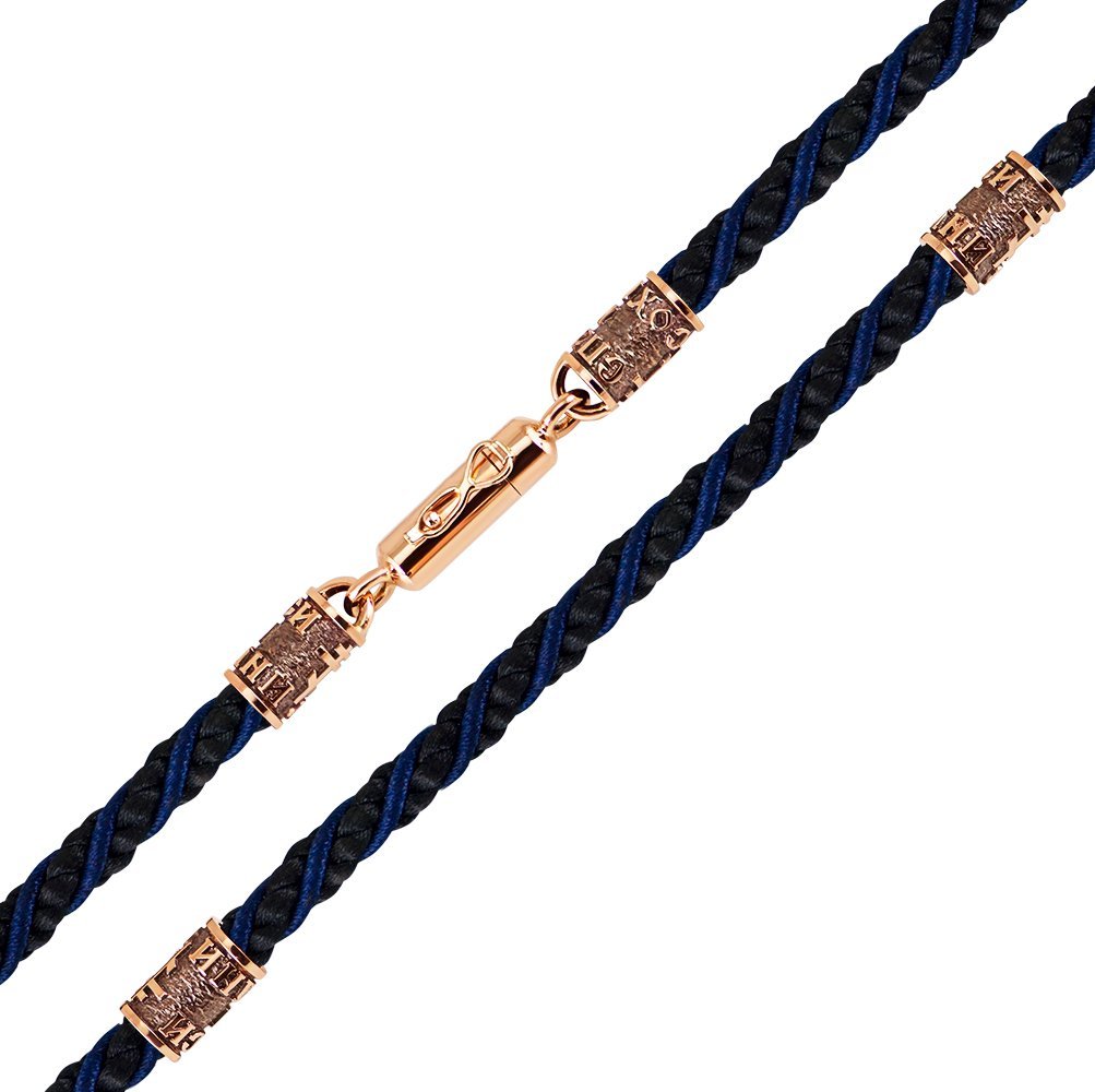 Lina z czerwonymi złotymi wstawkami. Sama lina jest przeplatana w kolorze czarnym i niebieskim, wstawki "Save and Preserve". Lock-box, okrągły, z jednym zamkiem i końcówkami. Wszystkie wkładki pokryte są niello. Waga biżuterii zależy od średnicy i liczby wkładek, przy średnicy sznura 6 mm waga złota w sznurze wynosi 14,86 grama. Wzór może być zmieniony zgodnie z życzeniem klienta.