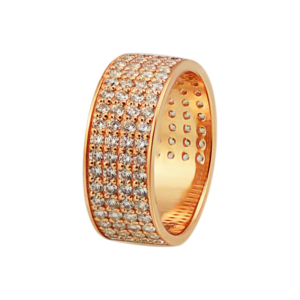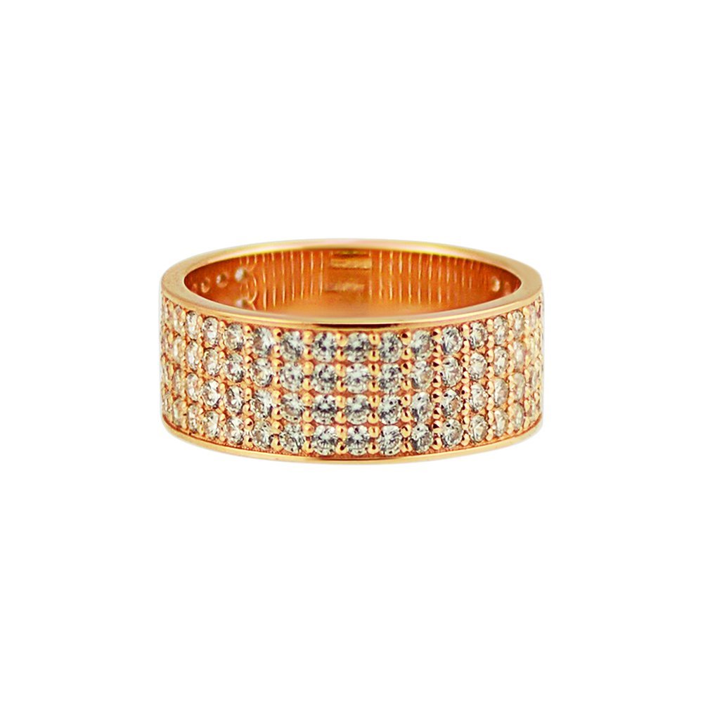 Pierścionek z czerwonego złota z rozproszonymi kamieniami. Waga jest skorelowana z rozmiarem, przy rozmiarze 17 waga złota w biżuterii wynosi 4,26 grama. Pierścionek jest wysadzany kamieniami o średnicy 1,5 mm. Wzór i wymiary mogą zostać zmienione zgodnie z życzeniem klienta.