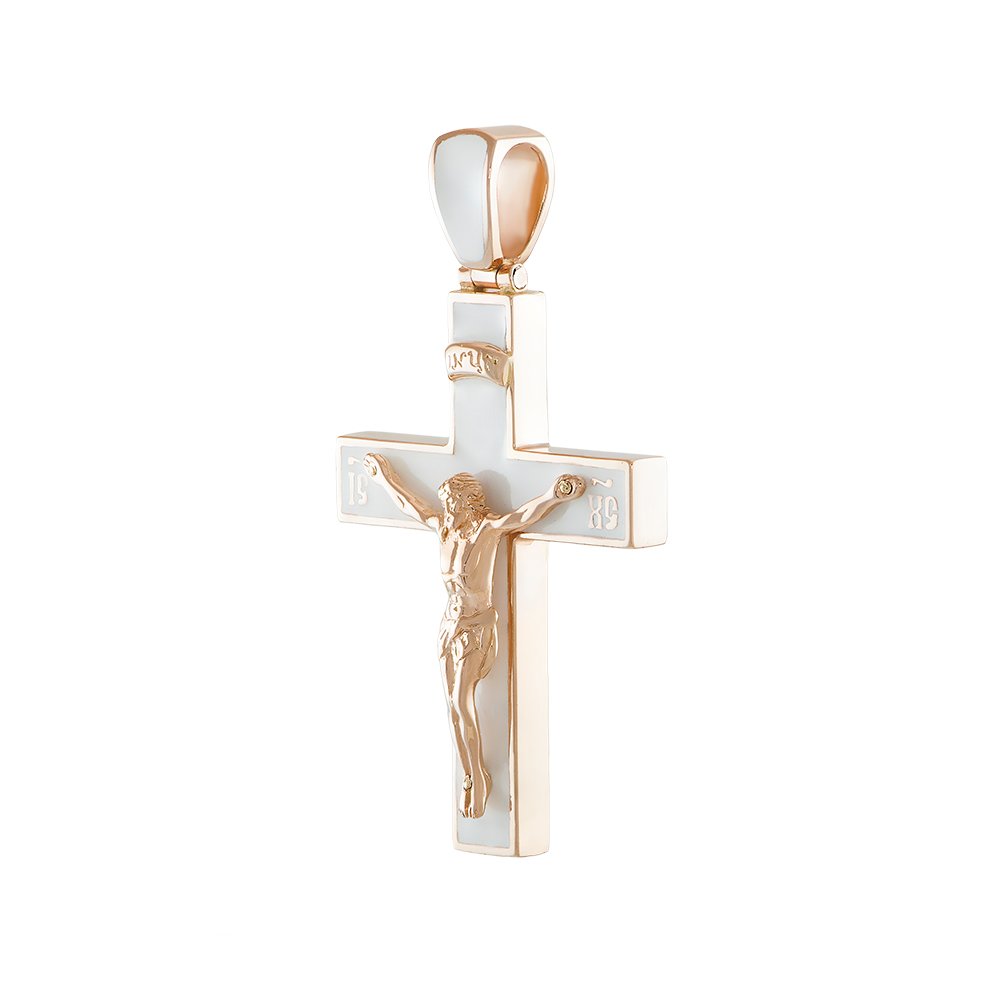 Cross with Crucifixion in white enamel