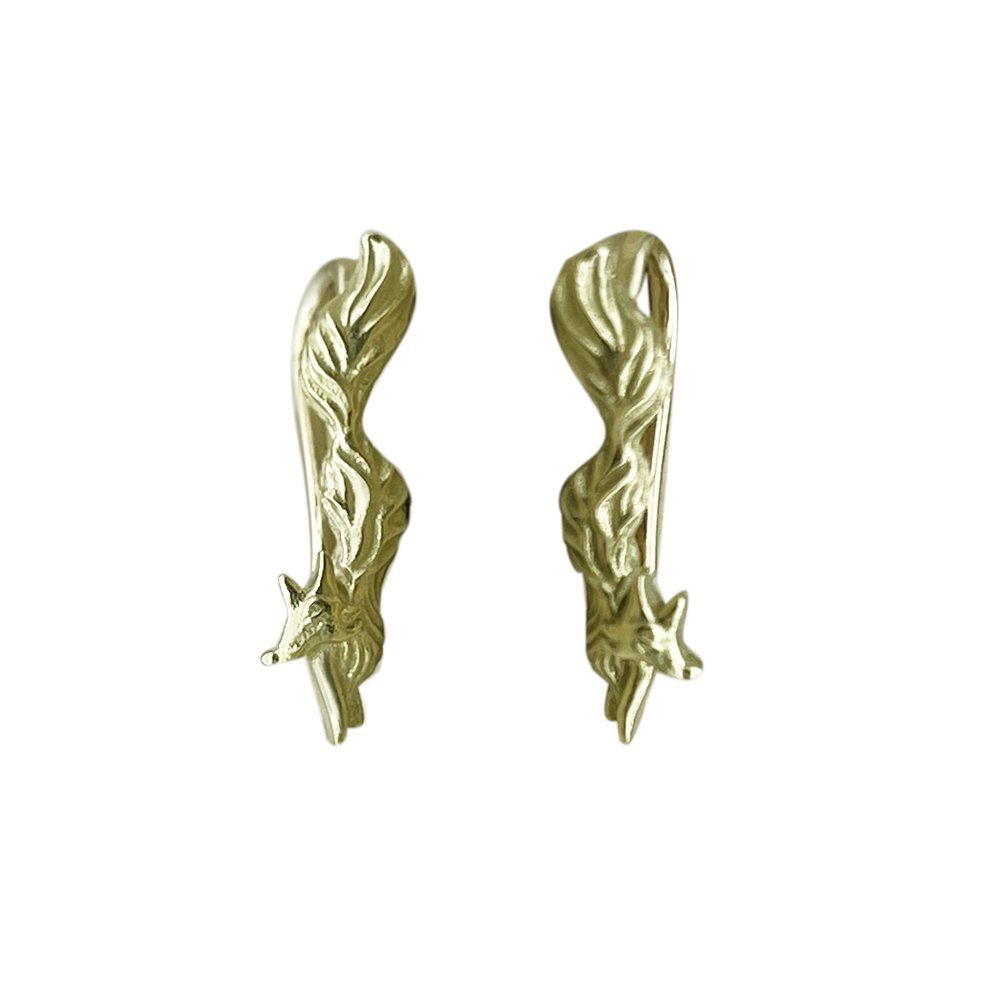 Earrings – cuffs in lemon gold in the form of foxes. Length of earrings 20 mm. The weight of the pair is 3.68 grams. The design can be changed at the customer’s request.