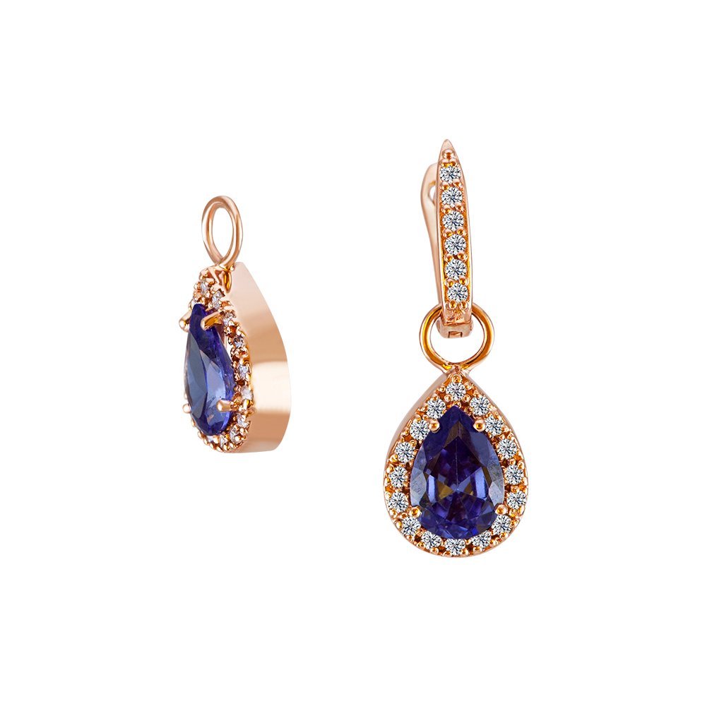 Transformer earrings in red gold, weighing 7.33 grams. The center stone, pear-cut 7mmx10mm, side stones with approximate diameter of 1.5mm. Stones can be set any, at the customer’s request.