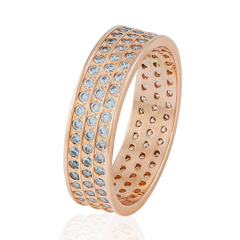 Golden ring with three paths of stones