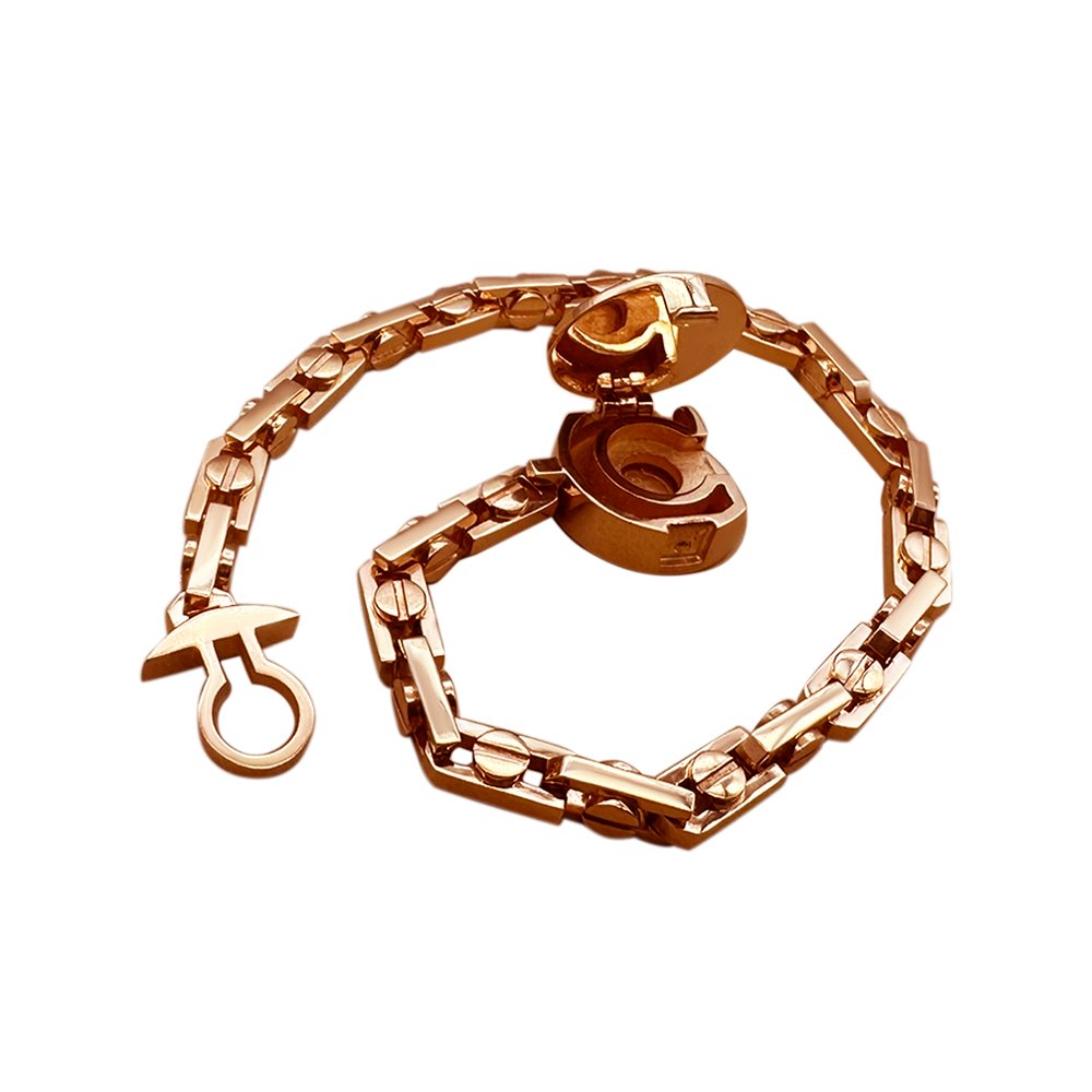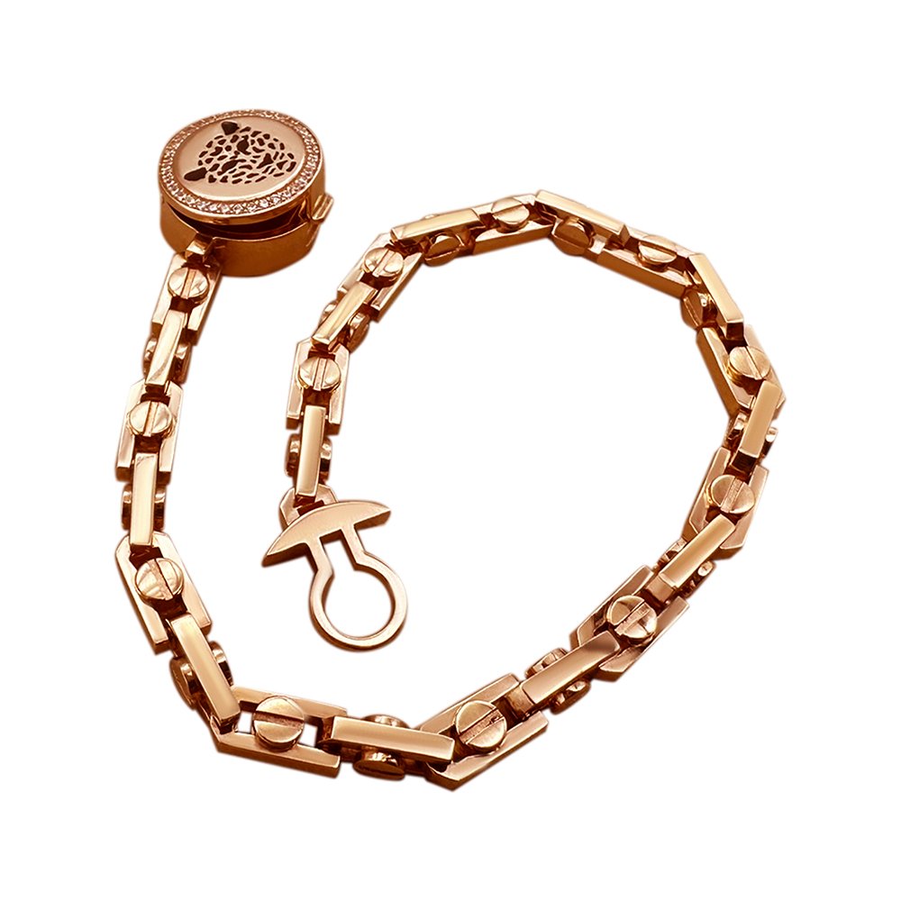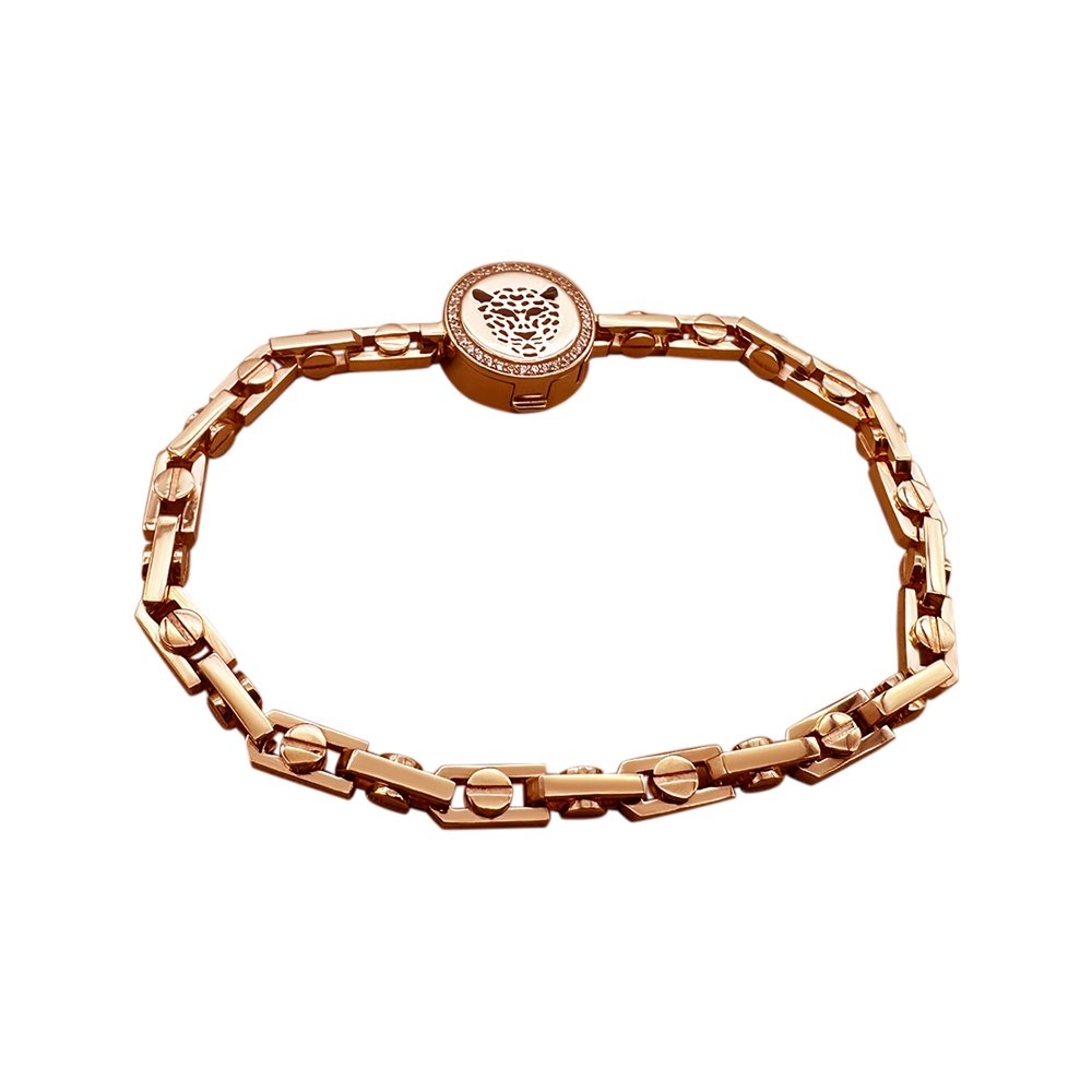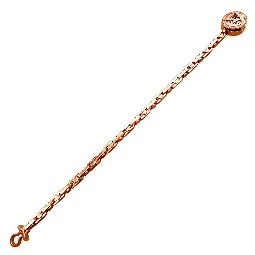 Bracelet weighing 27.74 grams, with size 19, in red gold 585*. The lock depicts a leopard, which is covered with enamel, inserts Swarovski stones, diameter 1mm, in the amount of 25pcs.