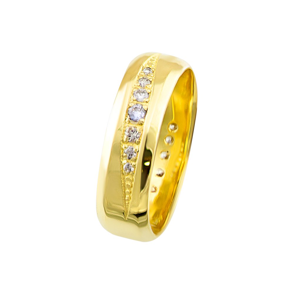 Engagement ring in 585* lemon gold, weighing 2.92 grams, at size 15, set with phianites.