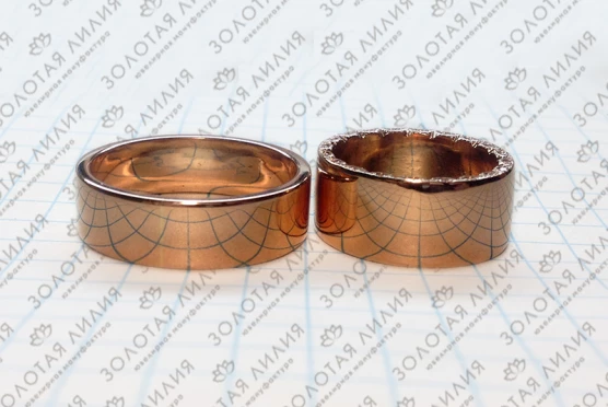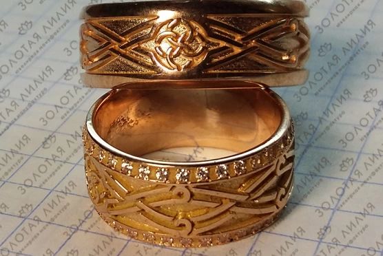 Найбільш затребуваним є виріб шириною від 6 до 8 мм. Приймаючи рішення замовити широку модель, слід подумати про комфорт носіння. Це можливо, якщо внутрішня частина каблучки гладка, з ретельно відполірованою поверхнею та заокругленими краями. Зовні прикраса може здаватися плоскою. Але якщо внутрішня площина оправи не вигнута, каблучка буде неприємно врізатися в шкіру.