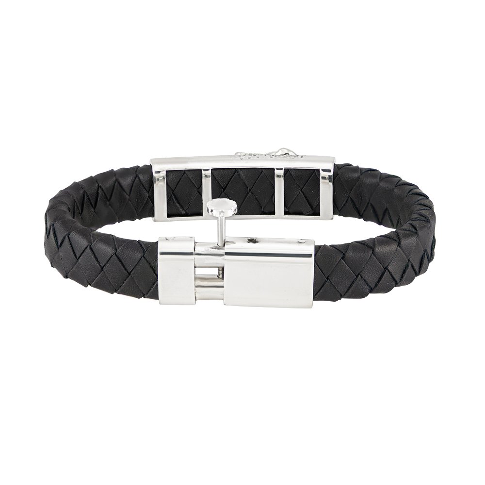 Браслет у білому золоті, вкритий родієм, вага золота в браслеті 25.14 грам при розмірі 19.5. На лицьовій стороні вставка зі скорпіоном. Замок гвинтовий. Ширина шкіри 10 мм.