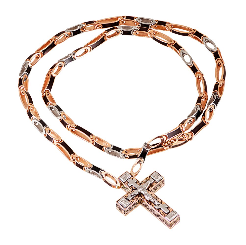 Унікальний ланцюг у комбінації червоного та білого золота. Плетіння має чергову послідовність: три ланки з червоного золота, одна ланка з білого золота, яка вкрита родієм, між ланок з'єднує кульки. На ланках по центру майданчики з чорною емаллю. Замок – коробка з двома фіксаторами, що повторює дизайн ланки. Вага змінюється залежно від розміру. Дизайн можна змінювати за бажанням клієнта.
