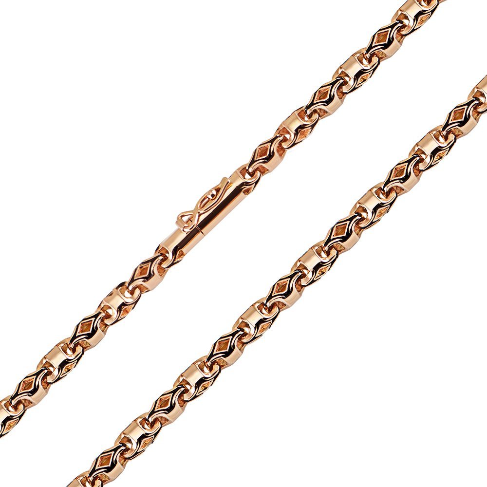 Ланцюг у червоному золоті, летьєва з покриттям чорної емалі. Замок – коробка з одним фіксатором. Вага залежить від зміни розміру. Дизайн прикраси можна змінювати за бажанням клієнта.