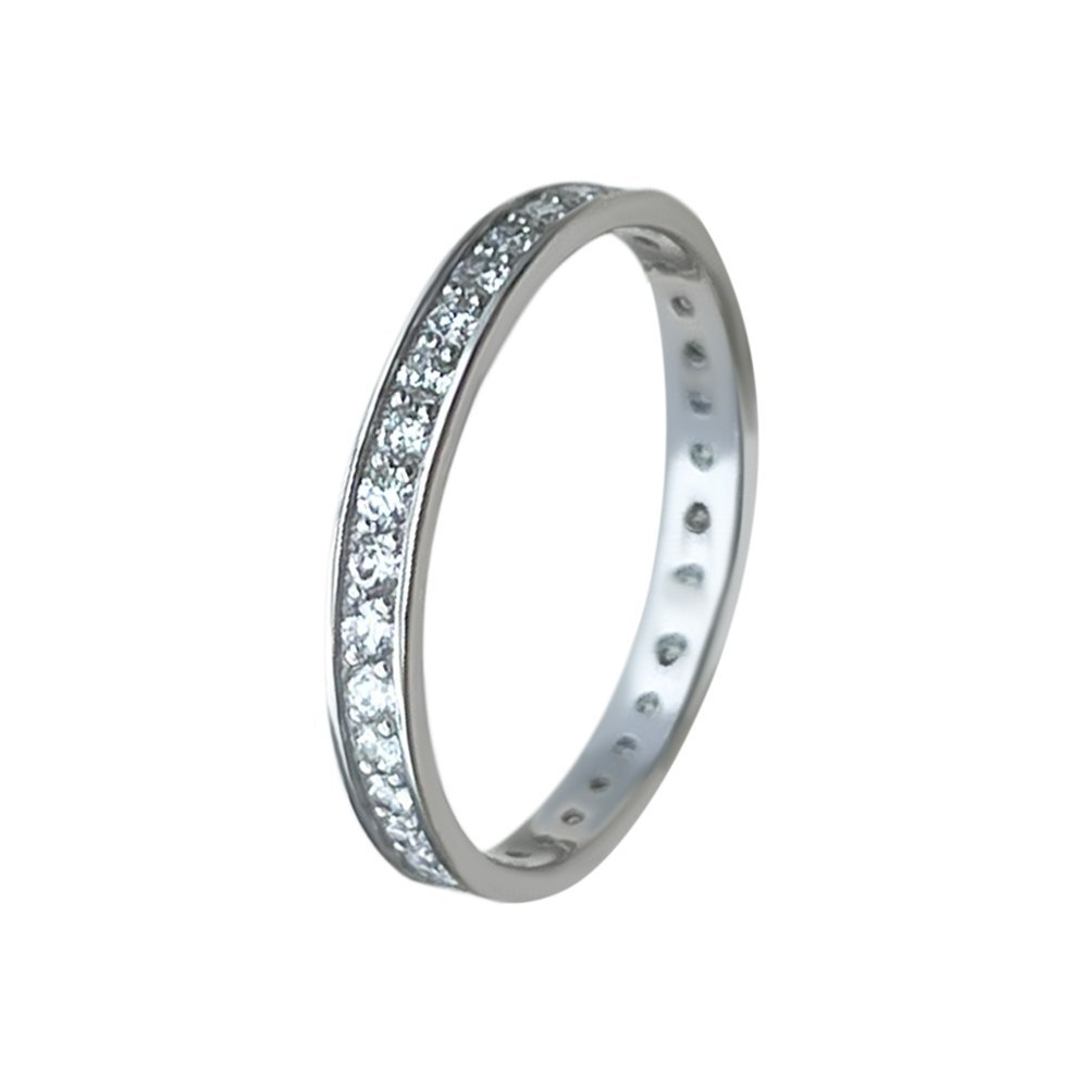 Ring in white gold, with a path of stones. In size 16, weight of gold 2.41 grams. Inserts rings fianite 2mm. Ring plated rhodium.