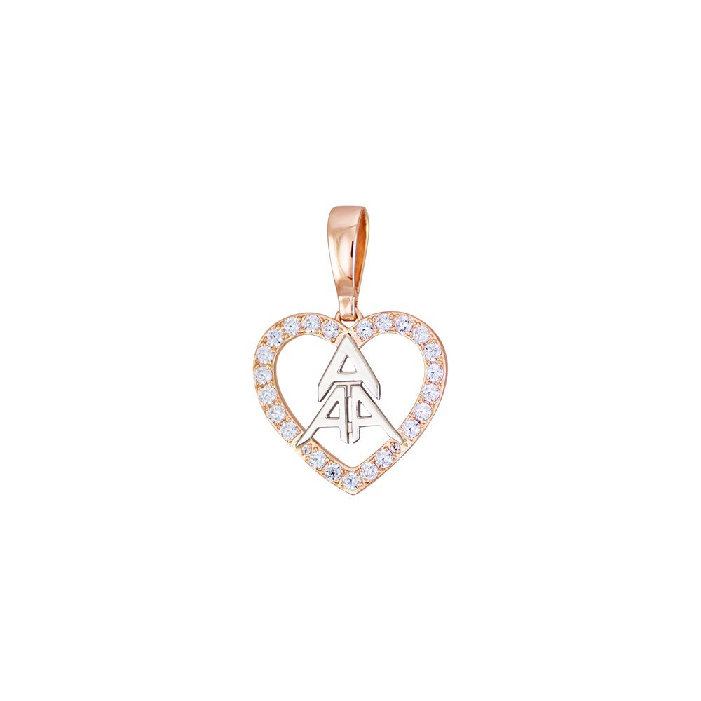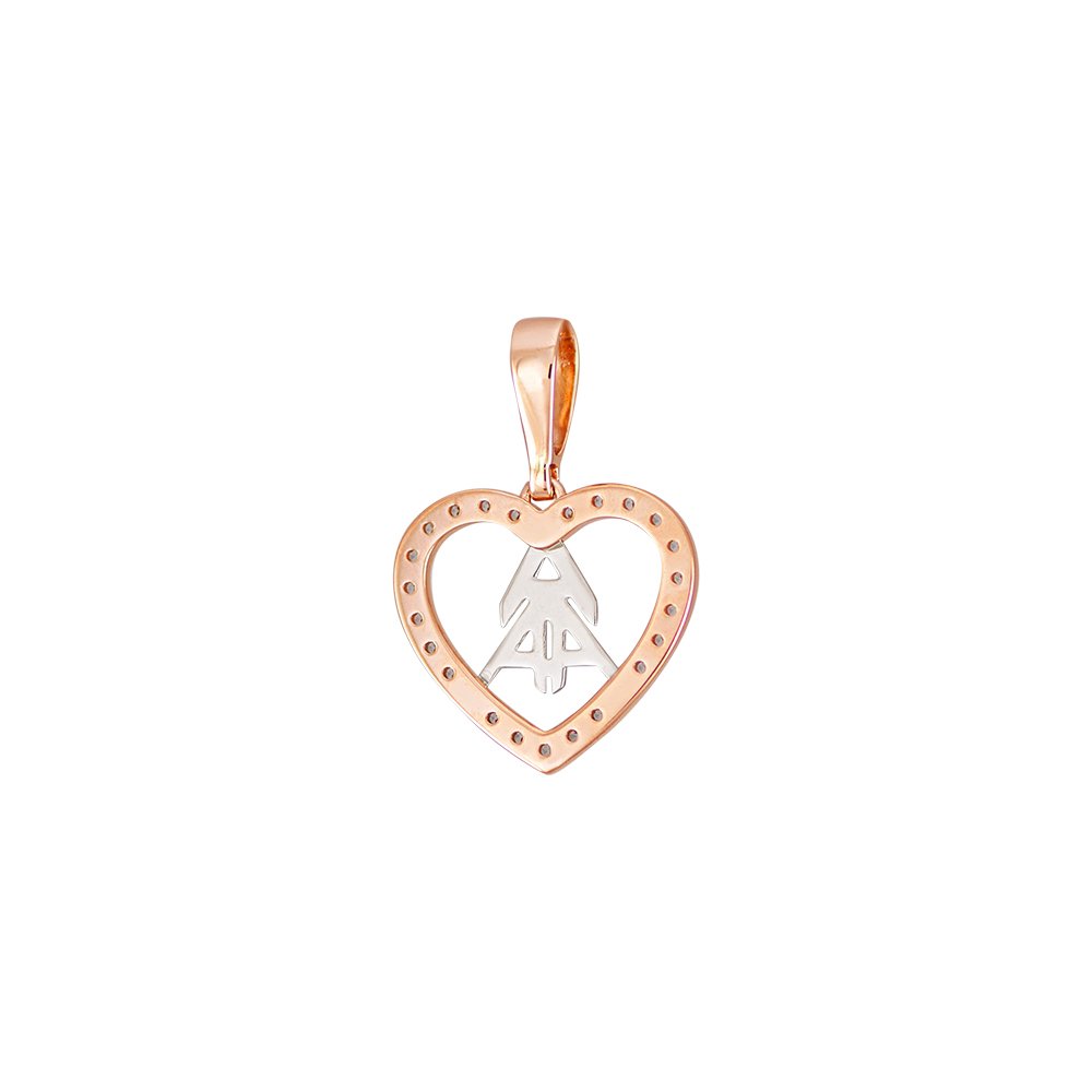 Підвіс із червоного та білого золота, вагою 3.72 при висоті підвісу без вуха 20мм. Основа в червоному золоті, накладки з літерами в білому золоті, покриті родієм. На основі у вигляді серця, на обідку розташовані камені діаметром 2 мм. Камені можна поставити будь-які за бажанням клієнта.